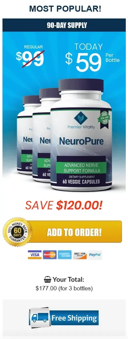 Neuropure is intended for individuals who experience nerve discomfort, such as tingling sensations, burning, or shooting pains. Whether the discomfort is associated with diabetes, age-related nerve degeneration, or other factors, Neuropure aims to be a promising option for those seeking natural support and relief from nerve-related symptoms.